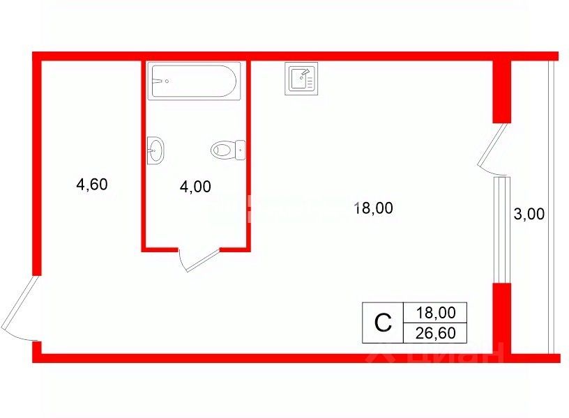 Квартира расположена на 9 этаже, откуда открывается вид во двор. В квартире просторная комната с выходом на застекленную лоджию (3 кв.м.) С/У совместный, установлена ванная.