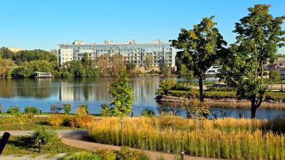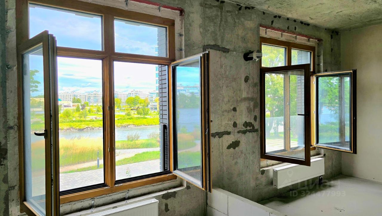Квартира на первой береговой линии с прямым видом на живописное слияние двух рек Невы и Ждановки! Дневная часть (кухня + комната) смотрит в сторону воды, ночная часть (спальни) смотрят в тихий двор..!