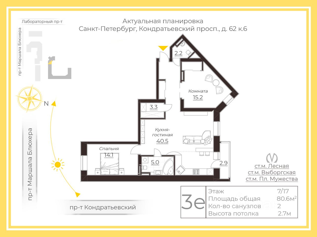 Двусторонняя квартира общая площадь 80 м с двумя спальнями и кухней гостиной и отличной планировкой - спальни расположены по разным сторонам квартиры - лучшая ориентация окон по сторонам света.