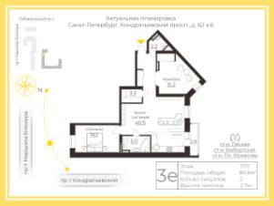 Много мест для хранения, 2 санузла - гостевой при входе, и просторный с ванной, кухня - гостиная 40 м, с выходом на лоджию.
