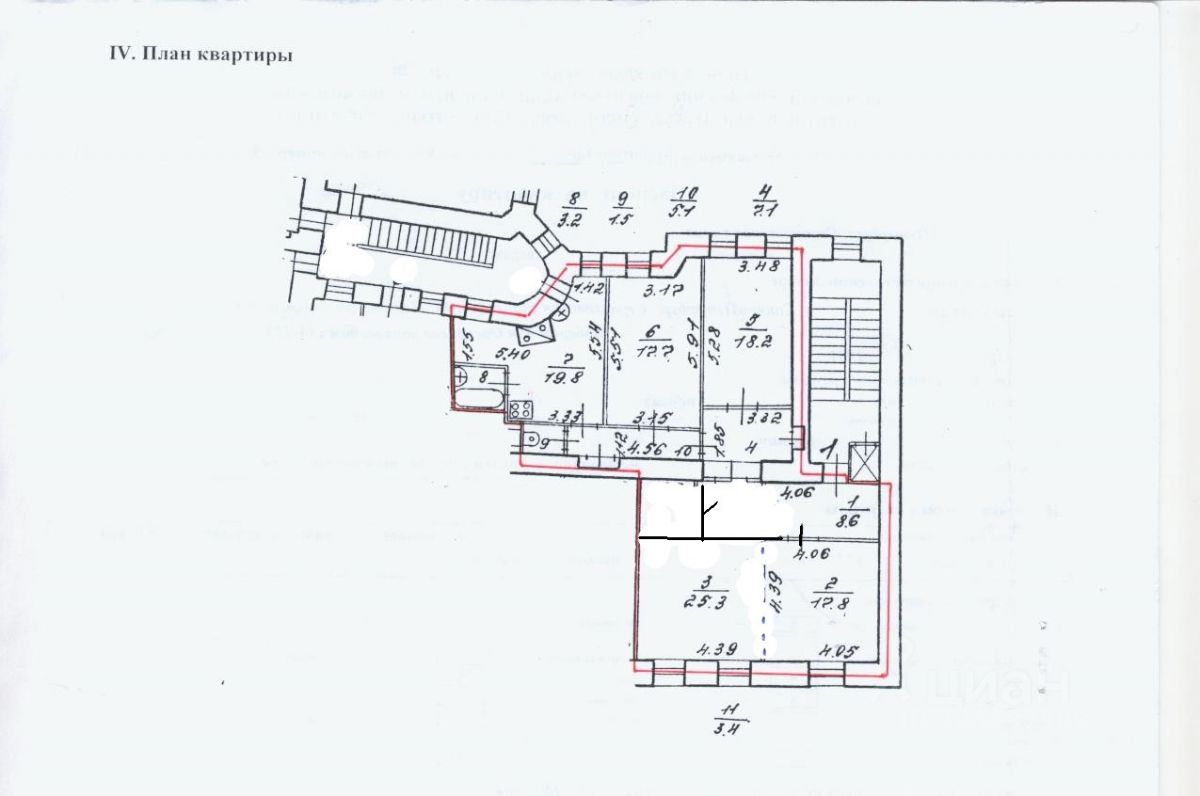 4 смежно- изолированные комнаты: (25,3 м² + 17,8), 18,2 м², 17.7 м²