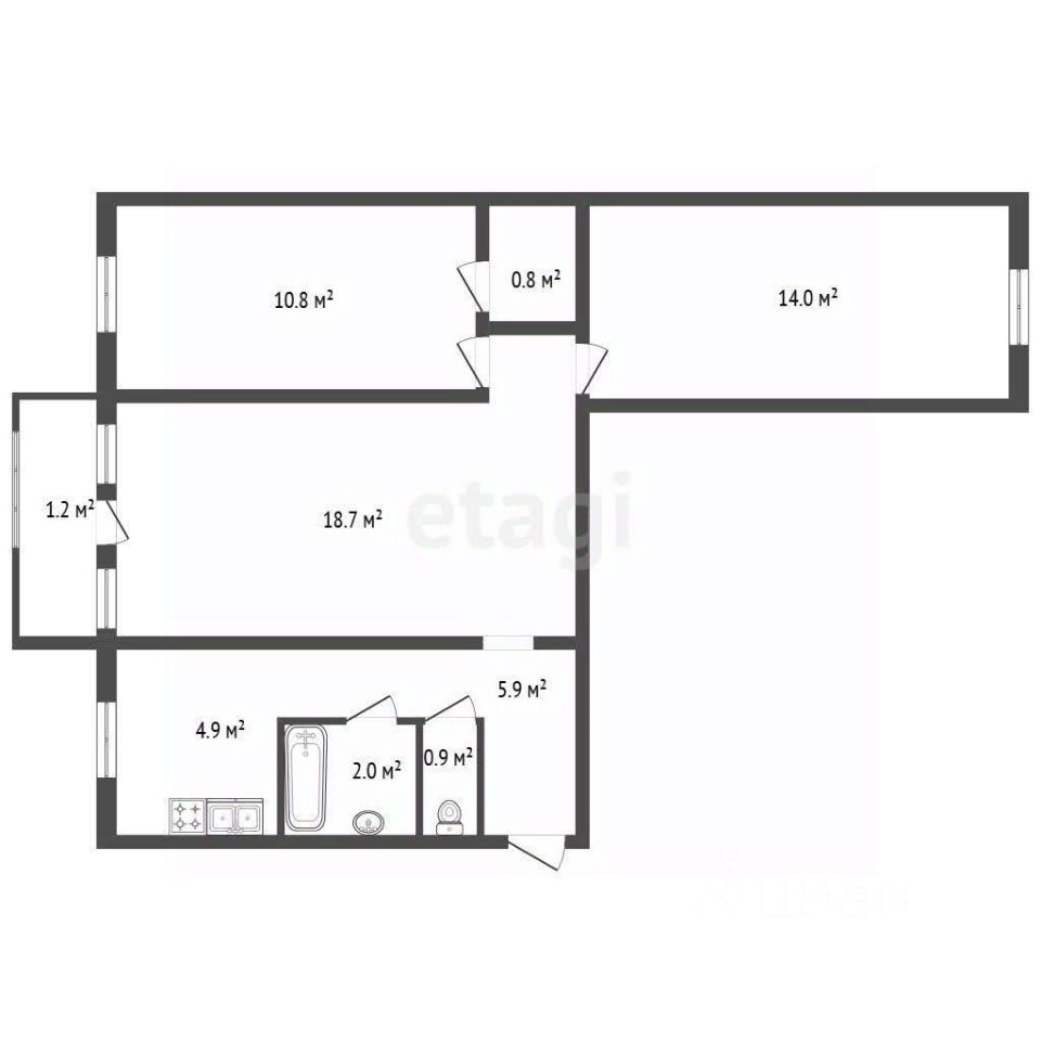 Просторная кухня, 3 спальни, санузел, большой балкон. В квартире сделан ремонт.
