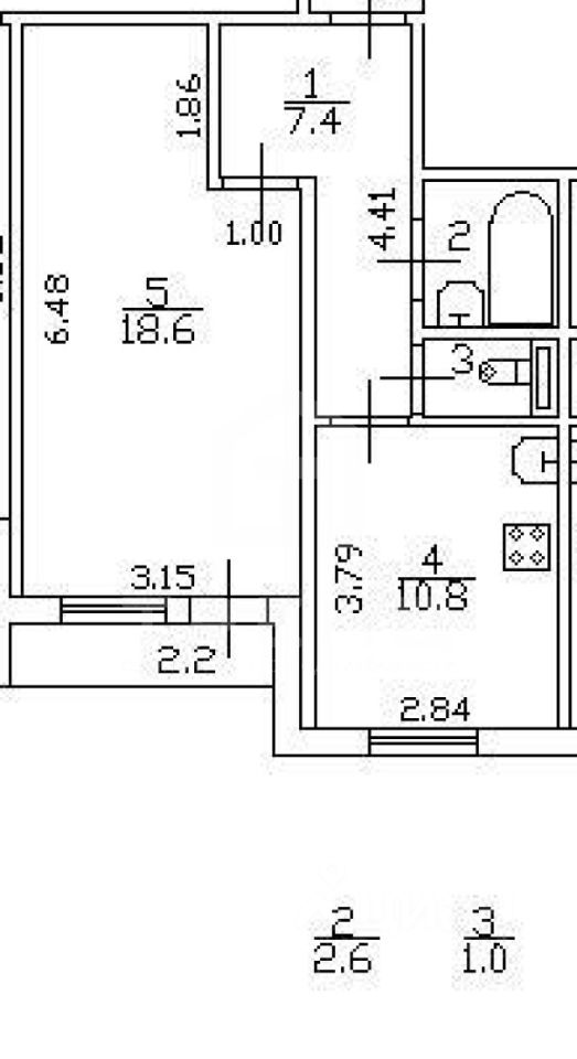 * Лоджия (2,2 м²);