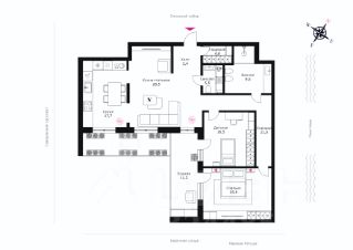 Комфортная площадь 117 метров: гостиная, отдельная кухня и 2 спальни.