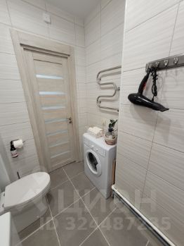 * Ванная комната: стиральная машина Indesit, зеркало, текстиль, декор.
