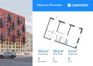 Строим кварталы для жизни с заботой о будущем. Предлагается 2-комнатная квартира комфорт-класса 59,24 кв.м в корпусе 1 на 5 этаже, в ЖК "Квартал Лаголово"
