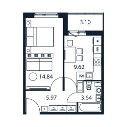 Прямая продажа от застройщика! Готовая Однокомнатная квартира 33.6 кв.м с кухней 9.62 кв.м с чистовой отделкой на 8 этаже в сданном ЖК "Полис Лаврики".