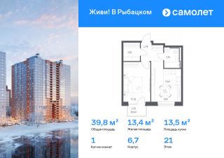 Строим кварталы для жизни с заботой о будущем. Предлагается 1-комнатная квартира комфорт-класса 39,83 кв.м в корпусе 6,7 на 21 этаже, в ЖК "Живи! В Рыбацком"