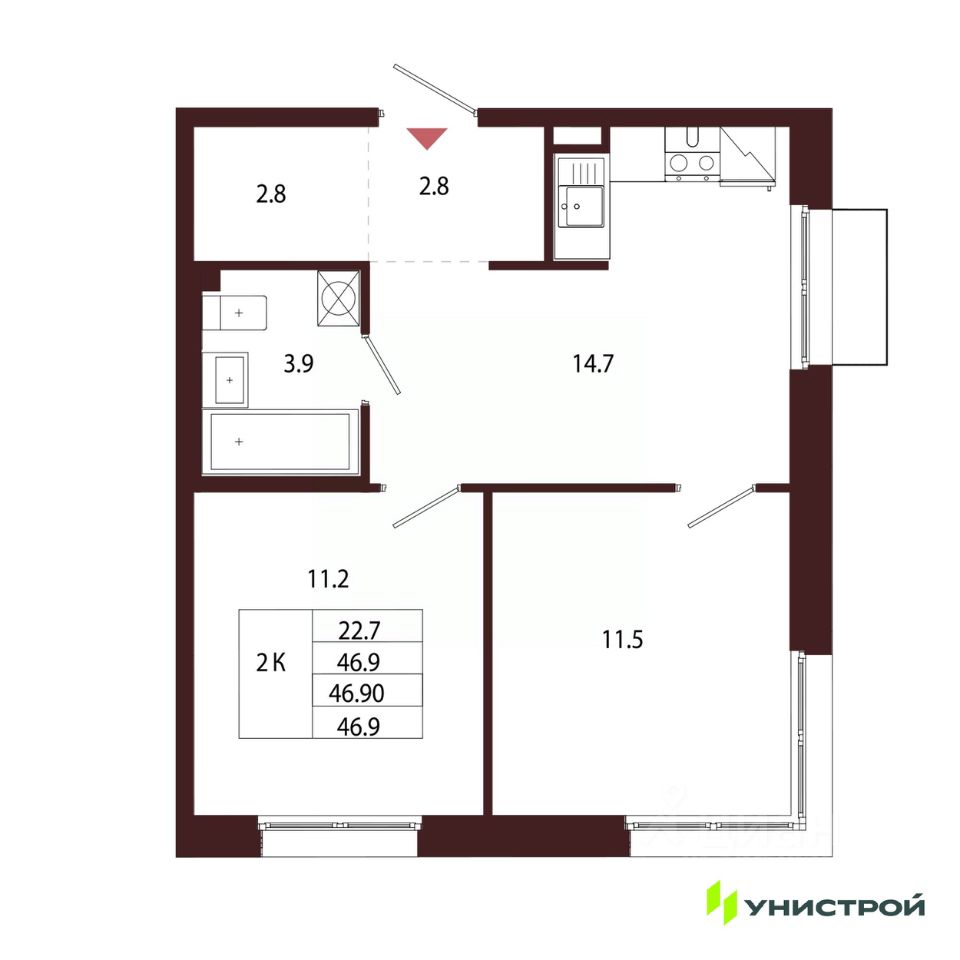 Общая площадь46,9 м²