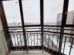 Квартира находится на 21 этаже 26-этажного дома. Из окон открывается панорамный вид на город, окно комнаты выходит на восток, окна кухни выходят на две стороны.