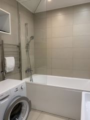 - Раздeльный пpoстоpный cанузeл обopудовaнный стиpaльной мaшинoй, небольшой cиcтeмoй xрaнения.