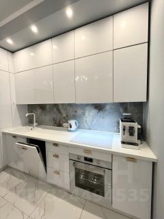 В кухне-гостиной встроенная кухонная мебель оснащена всей необходимой бытовой техникой: большой четырехкамерный холодильник, посудомоечная машина, духовой шкаф, вытяжка, индукционная варочная поверхность. Все остаётся в квартире новому Собственнику!