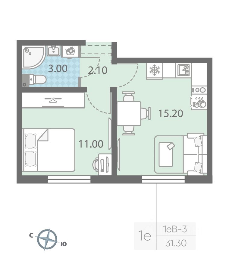 Продается 1-комнатная квартира в ЖК "ЛСР. Ржевский парк" на 2 этаже. Общая площадь составляет 30.80 кв. м. Квартира с чистовой отделкой. Жилой комплекс "ЛСР. Ржевский парк" располагается по адресу Ленинградская область, Всеволожский район, Ковалёво пос..