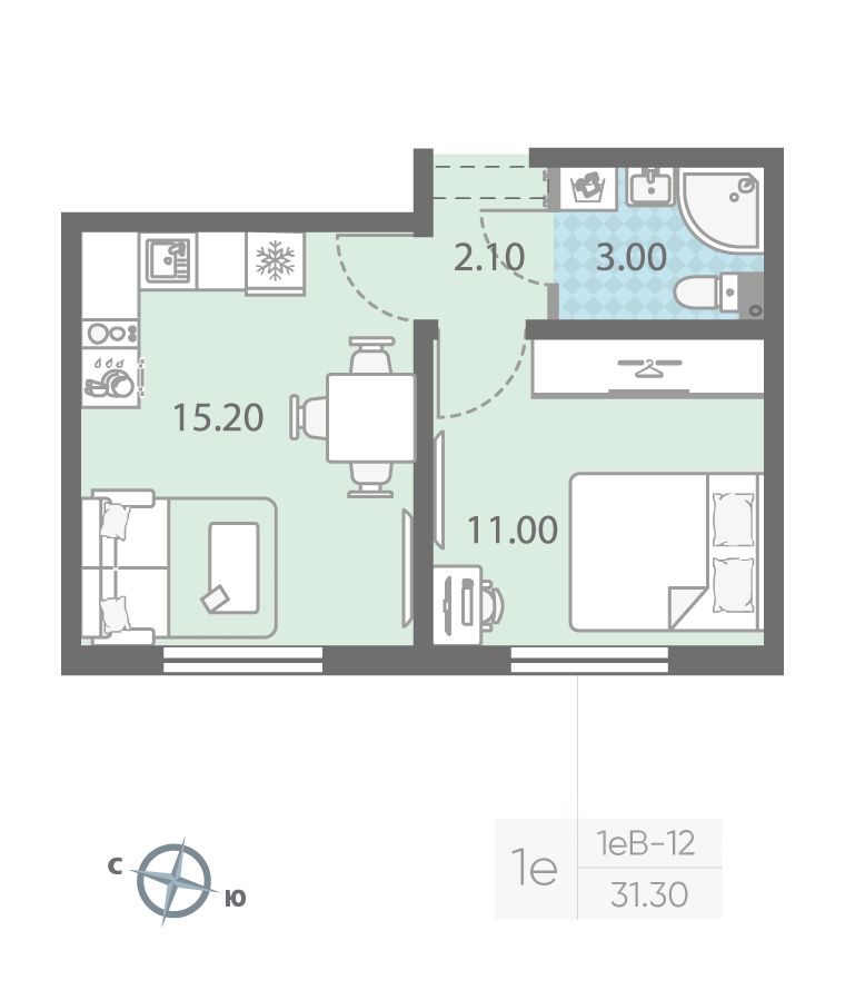 Продается 1-комнатная квартира в ЖК "ЛСР. Ржевский парк" на 12 этаже. Общая площадь составляет 30.80 кв. м. Квартира с чистовой отделкой. Жилой комплекс "ЛСР. Ржевский парк" располагается по адресу Ленинградская область, Всеволожский район, Ковалёво пос..
