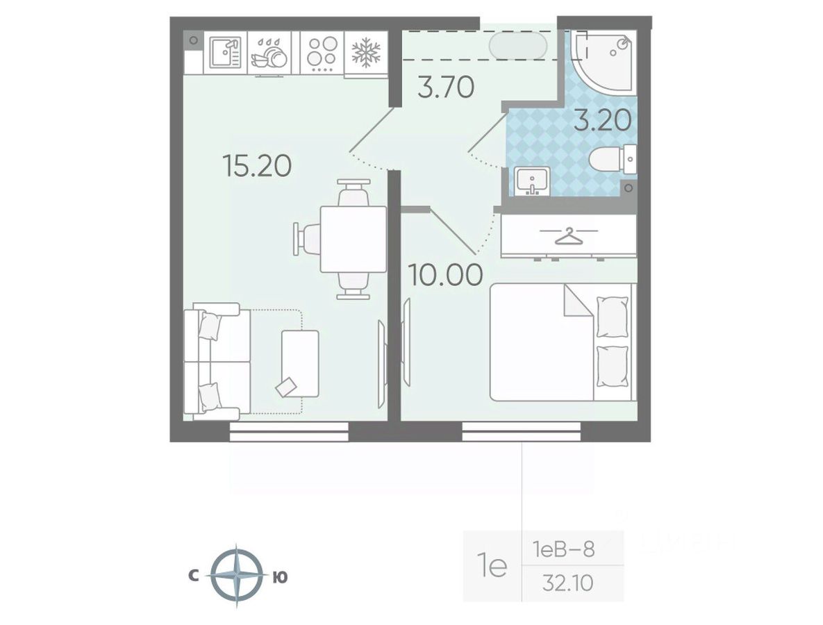 Продается 1-комнатная квартира в ЖК "ЛСР. Ржевский парк" на 14 этаже. Общая площадь составляет 32.10 кв. м. Квартира с чистовой отделкой. Жилой комплекс "ЛСР. Ржевский парк" располагается по адресу Ленинградская область, Всеволожский район, Ковалёво пос..