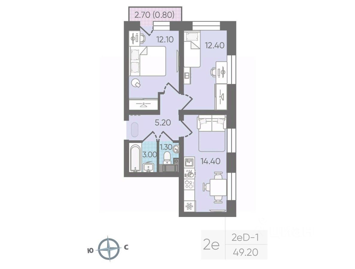 Продается 2-комнатная квартира в ЖК "ЛСР. Ржевский парк" на 11 этаже. Общая площадь составляет 49.40 кв. м. Квартира с чистовой отделкой. Жилой комплекс "ЛСР. Ржевский парк" располагается по адресу Ленинградская область, Всеволожский район, Ковалёво пос..