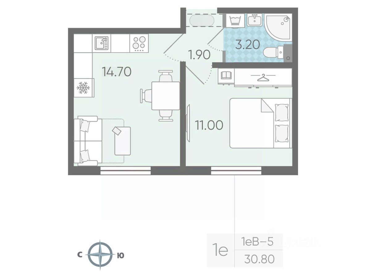 Общая площадь30,8 м²