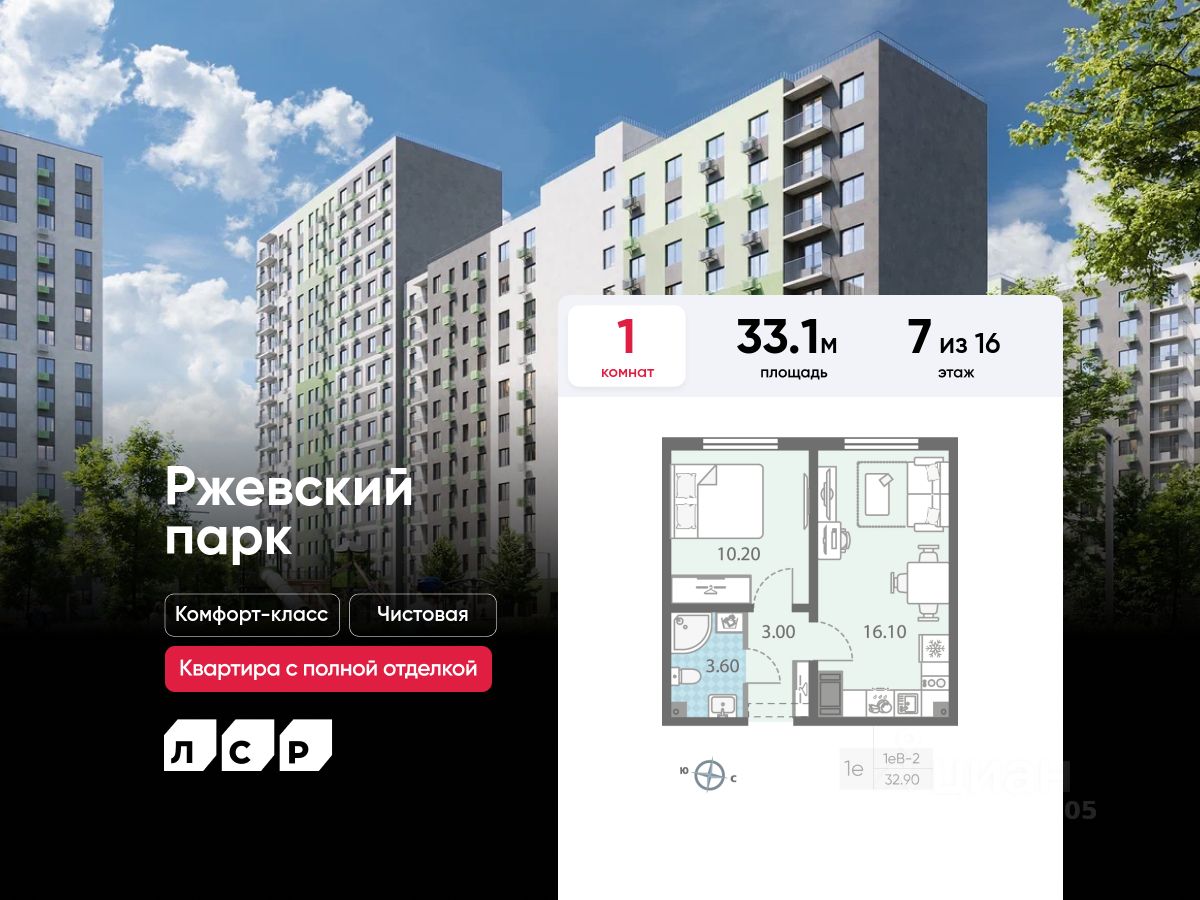 Продается 1-комнатная квартира в ЖК "ЛСР. Ржевский парк" на 7 этаже. Общая площадь составляет 33.10 кв. м. Квартира с чистовой отделкой. Жилой комплекс "ЛСР. Ржевский парк" располагается по адресу Ленинградская область, Всеволожский район, Ковалёво пос.. ЛСР. Ржевский парк - современный масштабный эко-проект: с пешеходными бульварами и велодорожками, площадками для спорта и отдыха в 30 минутах от центра Санкт-Петербурга. Расположение комплекса: • 13 минут до ж/д станции "Ковалёво"; • 30 минут до центра Санкт-Петербурга на автомобиле; • 26 минут до Финляндского вокзала. Квартира сдается с готовой отделкой из современных экологичных материалов: ламинированные межкомнатные двери, двухкамерные стеклопакеты, флизелиновые обои, качественный матовый ламинат с фактурой дерева, керамическая плитка. Между домами будут устроены бульвары, пешеходные и велодорожки, игровые и спортивные площадки, зоны отдыха для детей и взрослых. На первых этажах находятся колясочные, магазины, кафе и сервисные службы. На территории построят 4 школы, 9 детских садов, 2 спортивных комплекса, поликлинику, станцию скорой помощи и пожарное депо. Первый детский сад откроется уже в 2025 году. Преимущества комплекса: • Рядом лесопарк и Ладожское озеро • Живописные виды из окон • Безбарьерная среда • Развитая социальная инфраструктура • Умный дом • Двор без машин Успейте приобрести квартиру на выгодных условиях! Чтобы узнать подробности, обращайтесь за консультацией по телефону.