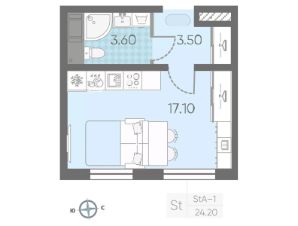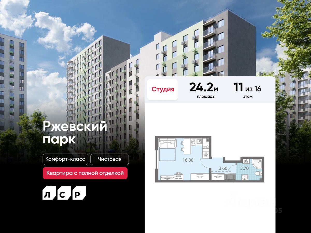 Продается студия в ЖК "ЛСР. Ржевский парк" на 11 этаже. Общая площадь составляет 24.20 кв. м. Квартира с чистовой отделкой. Жилой комплекс "ЛСР. Ржевский парк" располагается по адресу Ленинградская область, Всеволожский район, Ковалёво пос..