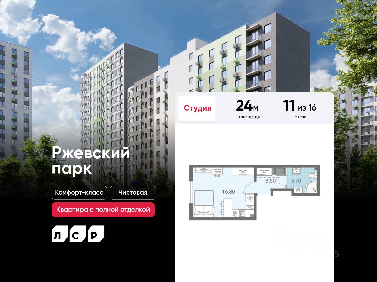 Продается студия в ЖК "ЛСР. Ржевский парк" на 11 этаже. Общая площадь составляет 24.00 кв. м. Квартира с чистовой отделкой. Жилой комплекс "ЛСР. Ржевский парк" располагается по адресу Ленинградская область, Всеволожский район, Ковалёво пос..