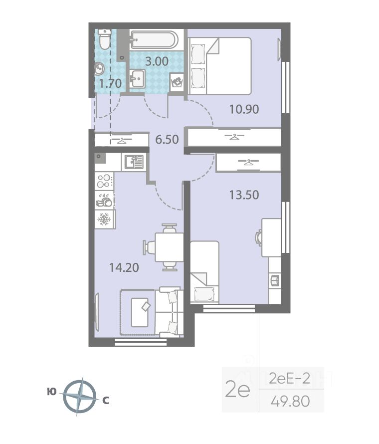 Продается 2-комнатная квартира в ЖК "ЛСР. Ржевский парк" на 1 этаже. Общая площадь составляет 50.50 кв. м. Квартира с чистовой отделкой. Жилой комплекс "ЛСР. Ржевский парк" располагается по адресу Ленинградская область, Всеволожский район, Ковалёво пос..