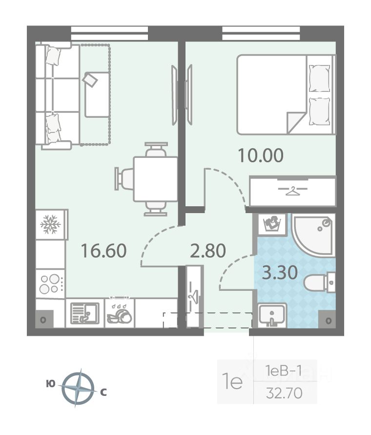 Продается 1-комнатная квартира в ЖК "ЛСР. Ржевский парк" на 2 этаже. Общая площадь составляет 33.70 кв. м. Квартира с чистовой отделкой. Жилой комплекс "ЛСР. Ржевский парк" располагается по адресу Ленинградская область, Всеволожский район, Ковалёво пос..