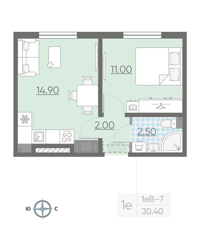 Продается 1-комнатная квартира в ЖК "ЛСР. Ржевский парк" на 11 этаже. Общая площадь составляет 30.90 кв. м. Квартира с чистовой отделкой. Жилой комплекс "ЛСР. Ржевский парк" располагается по адресу Ленинградская область, Всеволожский район, Ковалёво пос..