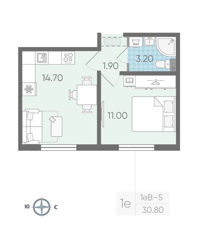 Продается 1-комнатная квартира в ЖК "ЛСР. Ржевский парк" на 11 этаже. Общая площадь составляет 30.80 кв. м. Квартира с чистовой отделкой. Жилой комплекс "ЛСР. Ржевский парк" располагается по адресу Ленинградская область, Всеволожский район, Ковалёво пос..