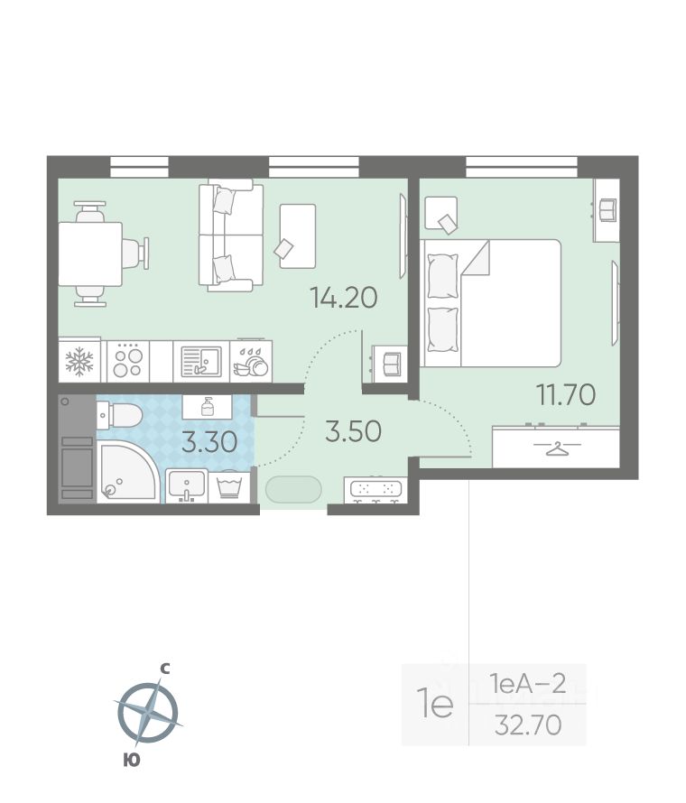 Продается 1-комнатная квартира в ЖК "ЛСР. Ржевский парк" на 16 этаже. Общая площадь составляет 32.60 кв. м. Квартира с чистовой отделкой. Жилой комплекс "ЛСР. Ржевский парк" располагается по адресу Ленинградская область, Всеволожский район, Ковалёво пос..