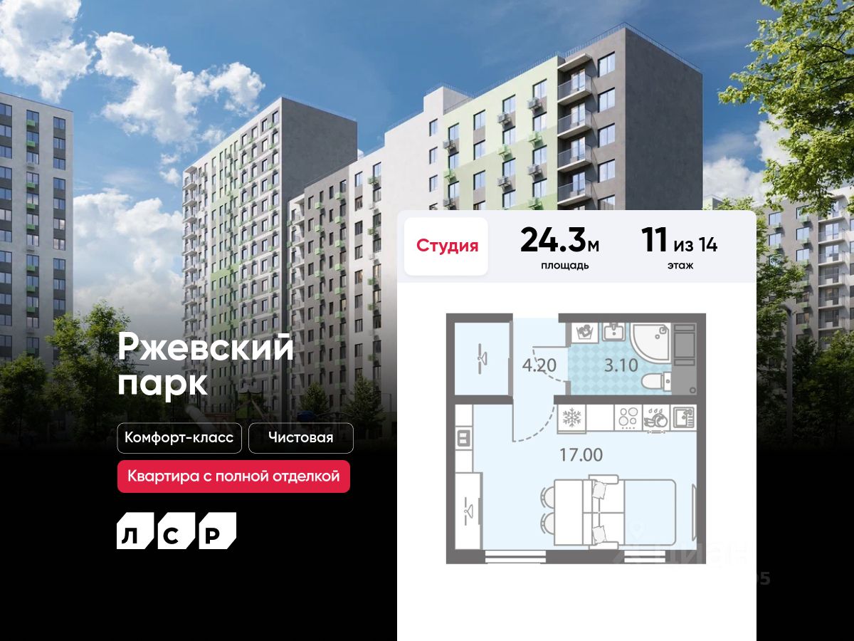 Продается студия в ЖК "ЛСР. Ржевский парк" на 11 этаже. Общая площадь составляет 24.30 кв. м. Квартира с чистовой отделкой. Жилой комплекс "ЛСР. Ржевский парк" располагается по адресу Ленинградская область, Всеволожский район, Ковалёво пос..