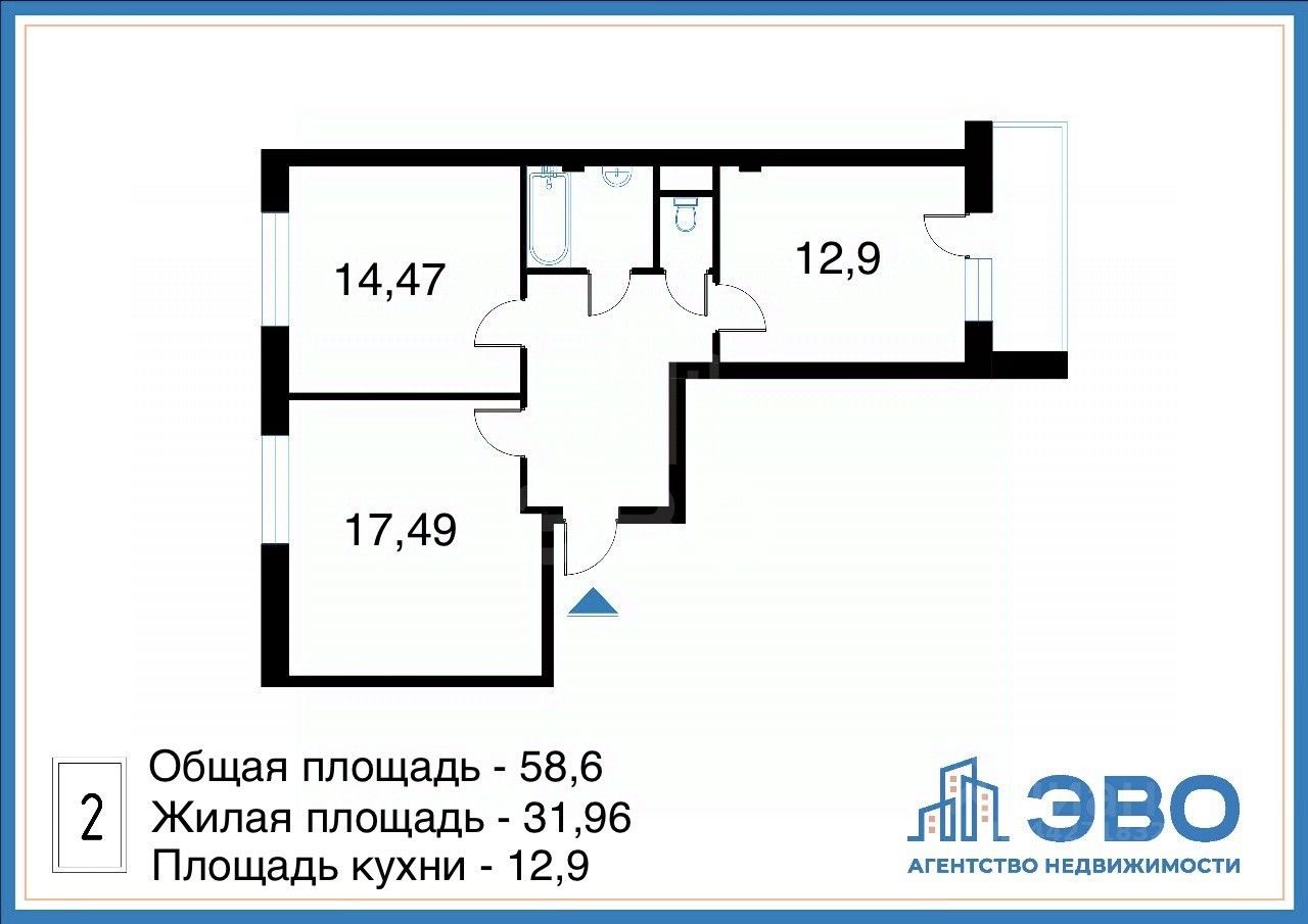 Обе комнаты - 14,47 м² и 17,49 м² - имеют удобные формы: мебель встаёт логично, а шкафы и места хранения легко организовать так, чтобы они вписывались аккуратно, не загромождая проходы и не "съедая" пространство.