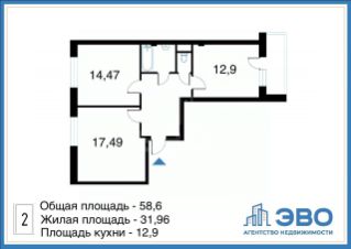 Продаётся просторная квартира площадью 58,6 м². Квартира с одной из самых удачных планировок в Кудрово.