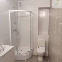 Светлая, теплая, не угловая. Аккуратный ремонт от застройщика: светлые стены (можно под покраску), много розеток для бытовых приборов, вентиляция, радиаторы отопления с регулировкой, ламинат. В совмещенном санузле установлена душевая кабина, электрический полотенцесушитель с 4 режимами, раковина с тумбой. Стены и пол выложены плиткой.