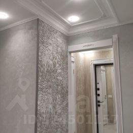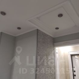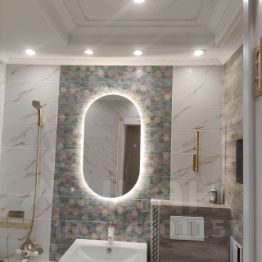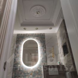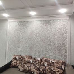 1.1.Многоуровневые потолки под лепнину с фигурным неоновым освещением по центру в комнате и кухне
