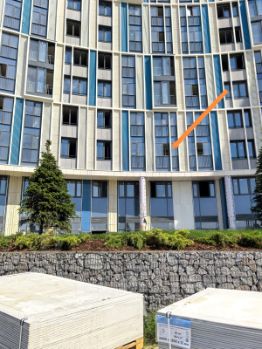 Наша квартира находится прямо по центру дома, на 3м этаже. Здесь самые лучшие видовые характеристики. 1-й этаж коммерции очень высокий - метров 5. Поэтому мы почти как 4-й этаж. На площадке всего 3 квартиры.