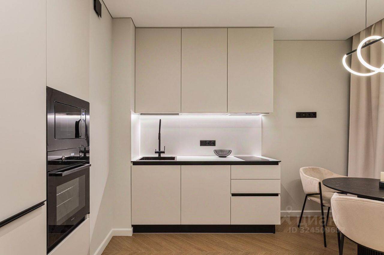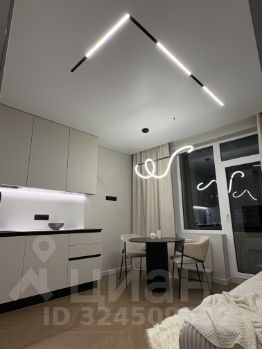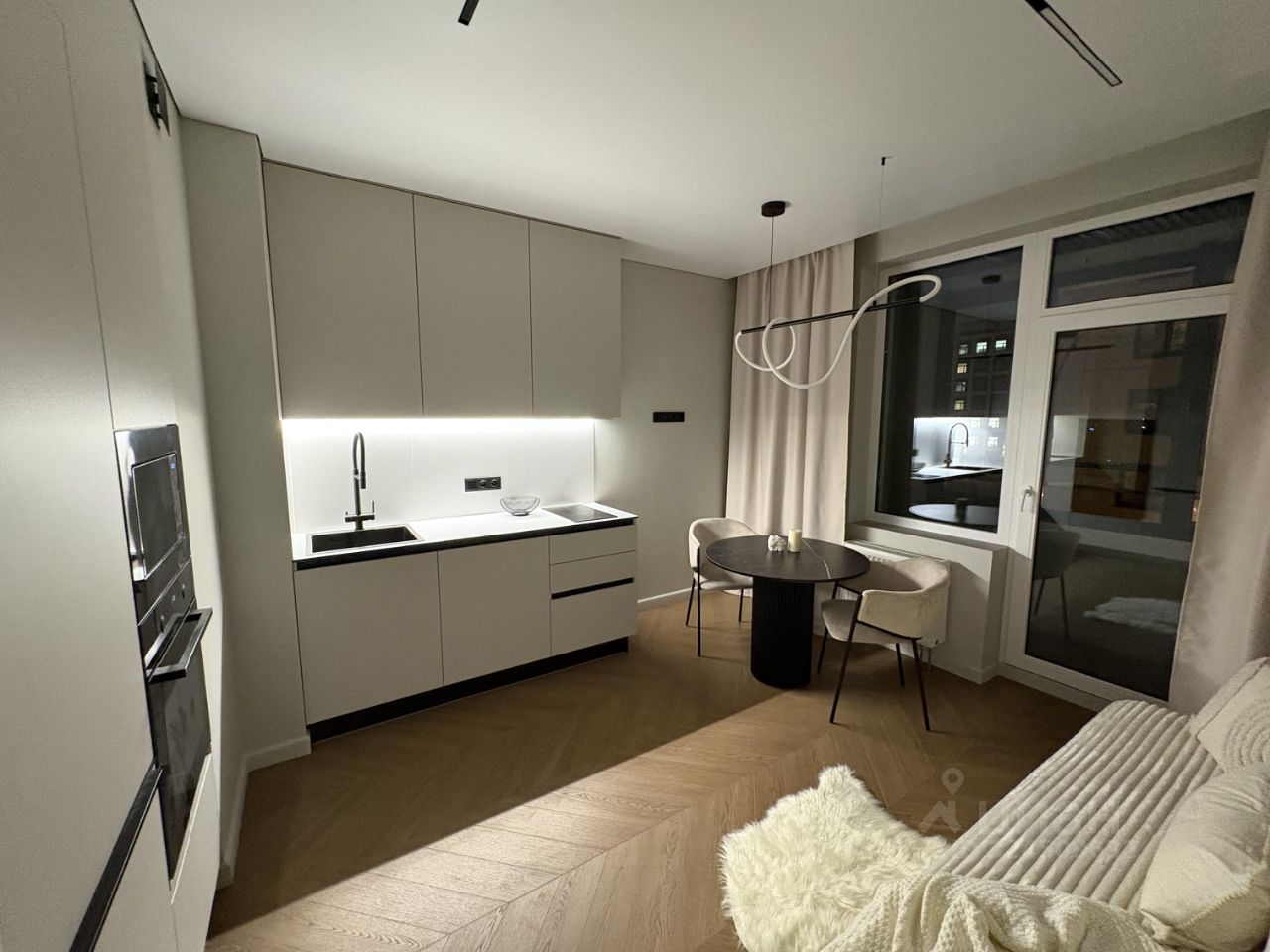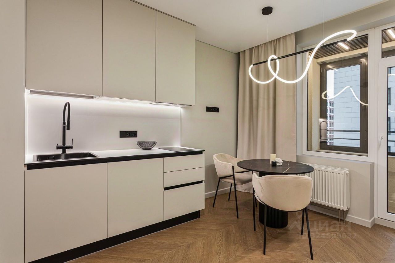 Общая площадь 38.3 м2 (13.1 м2 кухня, 13.5 м2 комната, 6.1 м2 коридор, 3 м2 ванная, 1.2 туалет, 1.4 м2 лоджия). В просторной кухне раскладывающийся диван, кухонной гарнитур со всем набором встроенной техники, большое количество сценариев света. Много мест для хранения, в спальне и прихожей 2 вместительных шкафа.