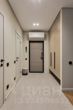 Ремонт из качественных материалов (стены подготовлены под покраску, окрашены, теплый пол в санузлах, в прихожей и на лоджии, потолки с теневым профилем. Кондиционер! Вся мебель на заказ.
