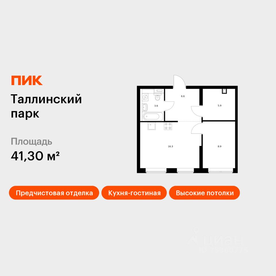 Продаётся 1-комн. квартира площадью 41,3 кв.м на 1 этаже 12 этажного дома (Корпус 3.3, Секция 1) проекта ПИК Таллинский парк. Светлый просторный подъезд на уровне земли, функциональная планировка, большие окна, предчистовая отделка.