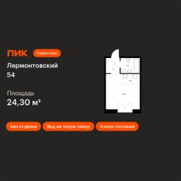 Продаётся квартира-студия площадью 24,3 кв.м на 4 этаже 7 этажного дома (Корпус 2.2, Секция 14) проекта ПИК Лермонтовский 54. Светлый просторный подъезд на уровне земли, функциональная планировка, большие окна, без отделки.