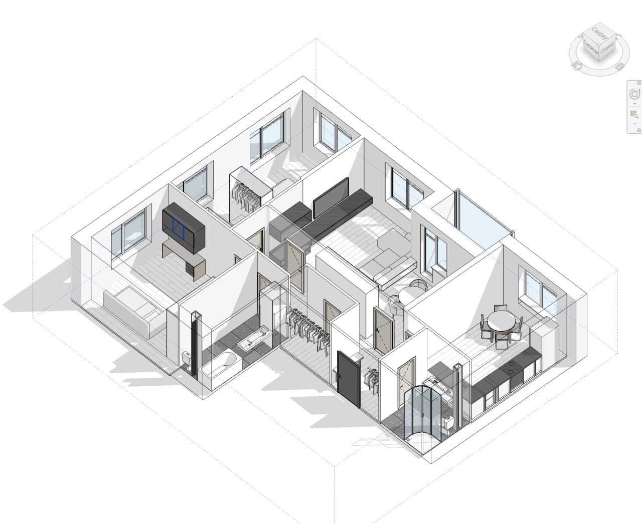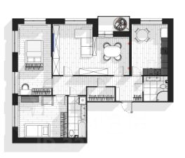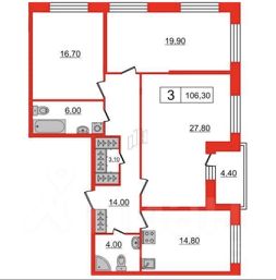 Пространство для жизни: 106 квадратных метров грамотно распределены между изолированными комнатами и общей зоной. Два санузла создадут комфорт для всей семьи и позволят избежать очередей.