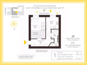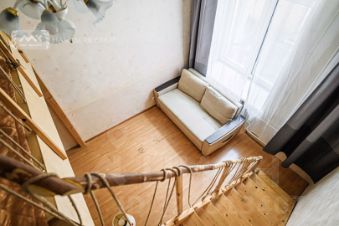 Квартира площадью 35.9 м2, находится на 2 этаже. Вид в тихий двор. Ремонт простой, но очень функциональный и приятный. Предусмотрено много мест для хранения вещей в том числе и антресоль над санузлом, нет бесполезной площади. В комнате сделан второй уровень, на котором можно встать в полный рост, за счет высоких потолков 3.75 метра. Просторный санузел с сауной, официально докупили мощность до 6 кВт.