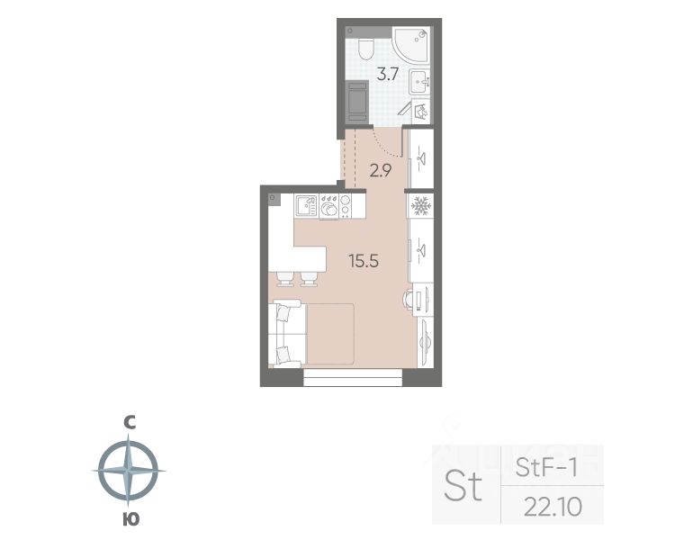 Продаётся студия в ЖК "Большая Охта" на 4 этаже. Общая площадь составляет 22.10 кв. м. Квартира с white box отделкой. Жилой комплекс "Большая Охта" располагается по адресу Санкт-Петербург, Красногвардейский.