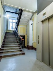 Парадный вход — аутентичный: лепнина, широкая лестница, старинные детали, камин. Атмосфера настоящего доходного дома начала XX века.