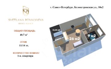 Вашему вниманию представлена новая однокомнатная квартира площадью 40,7 кв.м в ЖК ЦДС Чёрная Речка