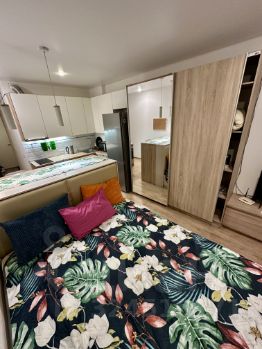 Продается уютная квартира-студия с необходимой мебелью и техникой для проживания и отдыха.
