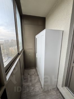 Большой застекленный балкон, где расположены 2 шкафа для хранения.