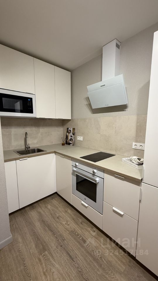 Техника: встроенный холодильник Атлант, посудомойка, духовка, вытяжка на угольных фильтрах, электрическая варочная поверхность, встроенная микроволновка, стиральная машина.