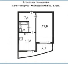 Kвартира c просторной комнатой 17м и кухней 10,3м;