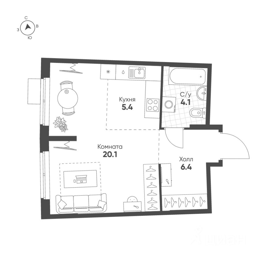 Продается квартира 189, по адресу Ленинградская область, Всеволожский муниципальный район, Муринское городское поселение, город Мурино, корпус Ягодное Река Парк, 1 очередь, участок 1.10, корпус 1 в Ягодное Река Парк на 3 этаже, с площадью 36 м2.