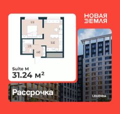 Продается однокомнатная квартира с предчистовой отделкой в ЖК "Новая Земля" на 11 этаже. Общая площадь: 31.24 кв.м., жилая: 9.18 кв.м., площадь просторной кухни-столовой: 13.82 кв.м. Все окна выходят на одну сторону. В квартире один совмещенный санузел. Высота потолков 2.85 м.